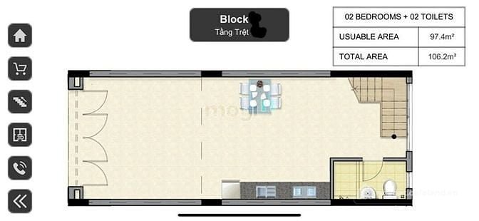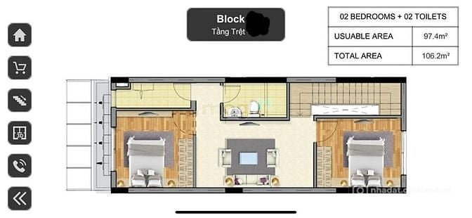 - Diện tích: 106.2 m2.