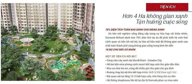 + Diamond Brilliant sở hữu công viên xanh 4ha, mật độ xây dựng thấp.
