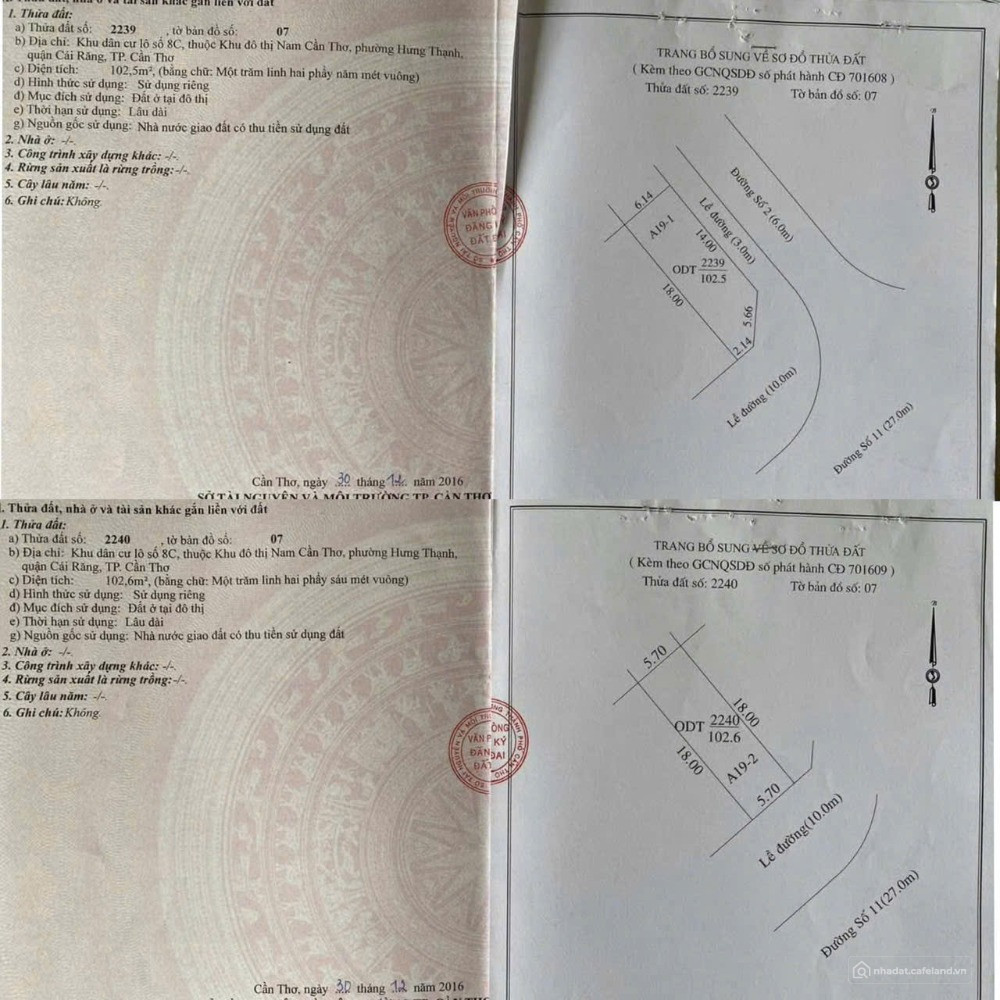 BÁN CẶP NỀN GÓC 2 MẶT TIỀN ĐƯỜNG LÊ TRỌNG TẤN KDC NAM LONG , CẦN THƠ