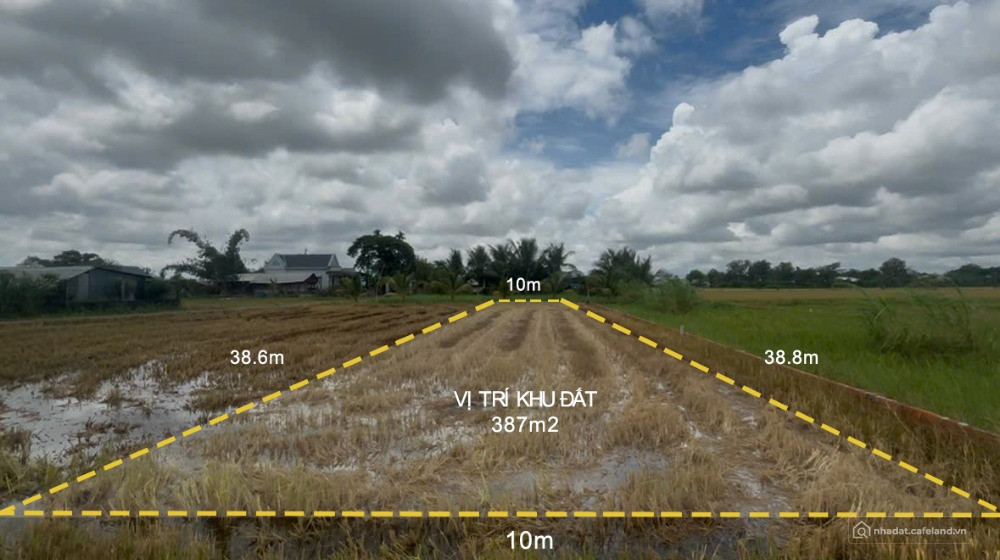 Diện tích: 387m² (ngang 10m dài 38,8m), mặt tiền rộng rãi, đất vuông vắn dễ xây dựng.