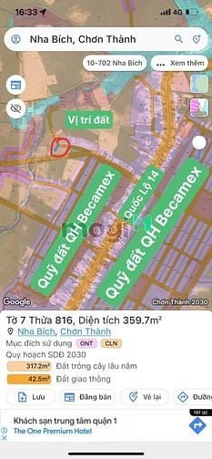 Đất SÁT Quốc Lộ 14 - thị xã Chơn Thành - tỉnh Bình Phước - 0906625178 - Giá 5xx triệu ( giáp chủ )