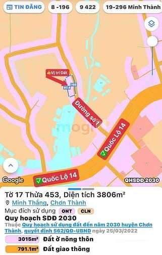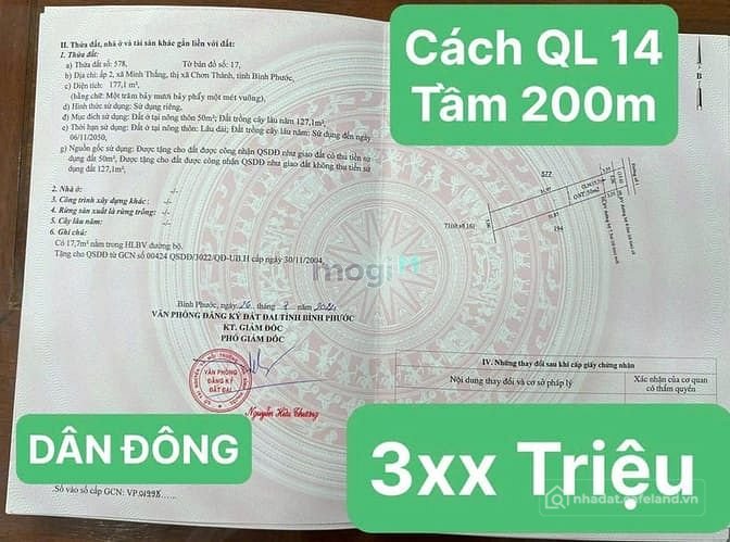 KÈO THƠM RẺ NHẤT Xã Minh Thắng, Thị Xã Chơn Thành BP - cách QUỐC LỘ 14 tầm 200 mét