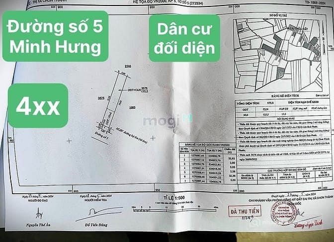 5x 35 x 50 m thổ cư ,đất mặt tiền đường bê tông đường số 5 thông ,dân cư hiện hữu
