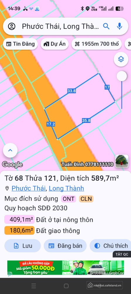 Ngoài ra còn 1 thửa 590m ngay gần đó Đất Phước Thái - Long Thành