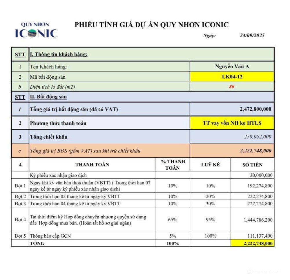 Lô 04-12 đất nền giá đẹp nhất Iconic Quy Nhơn, chỉ 2,222 tỷ -80m2