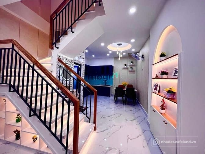 + Kết cấu: Nhà 1 trệt, 1 lầu, thiết kế có giếng trời thông thoáng, 2 phòng ngủ, 2 nhà vệ sinh, phòng bếp, phòng khách, khu giặt phơi, nhà mới đẹp lung linh full nội thất cao cấp sách valy vô ở ngay.