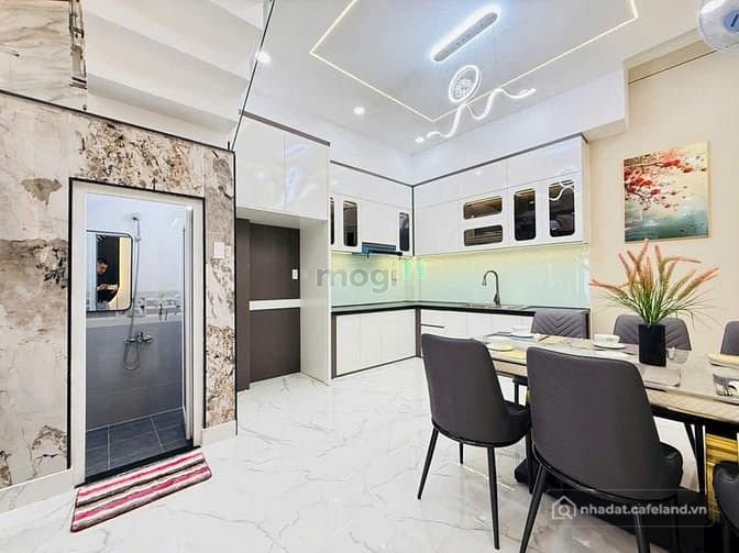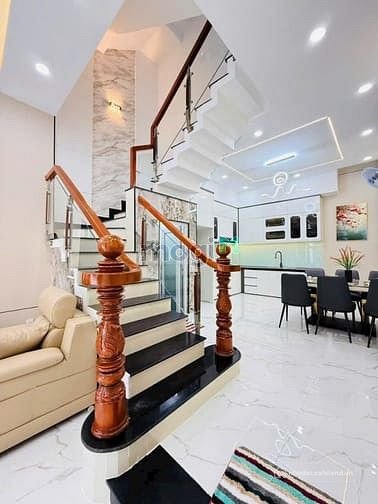 + Kết cấu: Nhà 1 trệt, 3 lầu, sân thượng trước sau, thiết kế thông thoáng rất đẹp, 2 giếng trời thoáng mát, 4 phòng ngủ, 4 nhà vệ sinh, có chỗ để xe máy rộng rãi, gara xe hơi, bồn tắm nằm, có phòng thờ, phòng bếp, khu giặt phơi, phòng khách, khu dân trí cao, sang trọng, full nội thất cao cấp vô ở ngay. Nhà đã hoàn công đầy đủ công chứng ngay trong ngày.