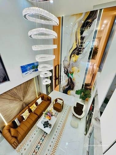 + Kết cấu: Nhà 1 trệt, 1 lửng, 4 lầu, sân thượng trước sau, thiết kế thông thoáng rất đẹp và xây mới 100%, có giếng trời, kiên cố, 4 phòng ngủ, 5 nhà vệ sinh, ban công rộng, có phòng thờ, phòng bếp, phòng khách, gara xe hơi, phòng xông hơi, phòng chăm sóc sức khoẻ, khu giặt phơi, hệ thống điện smart home, khu đồng bộ đẹp, sang trọng, full nội thất cao cấp chỉ xách vali vô ở.