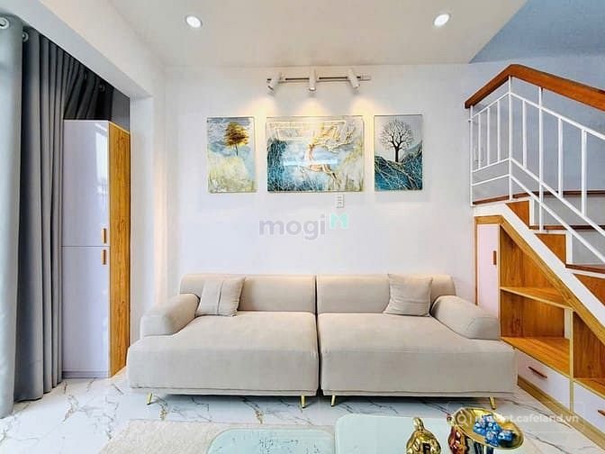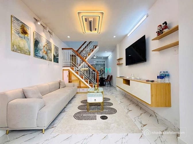 + Kết cấu: Nhà 1 trệt, 1 lầu, có giếng trời thoáng mát, 2 phòng ngủ, 2 nhà vệ sinh, phòng bếp, phòng khách, khu giặt phơi, ban công, nhà mới đẹp full nội thất cao cấp vô ở ngay.
