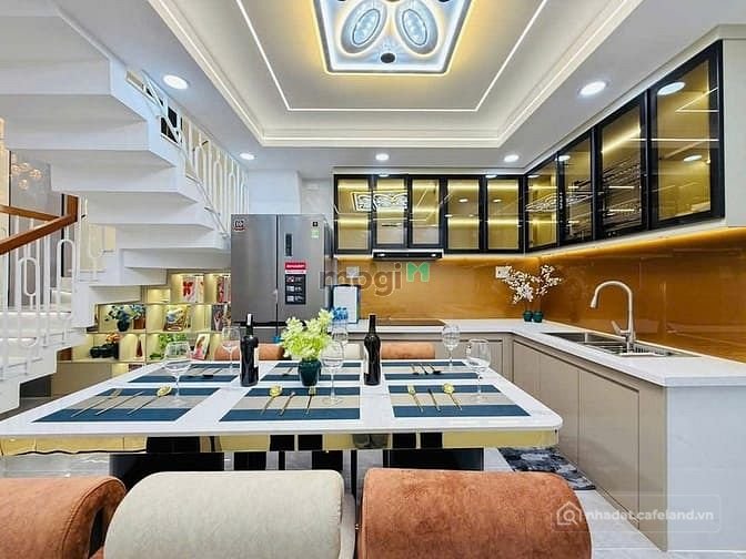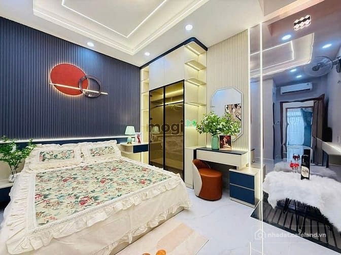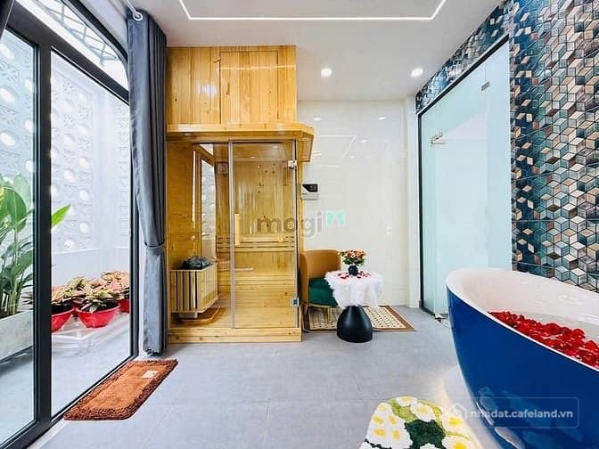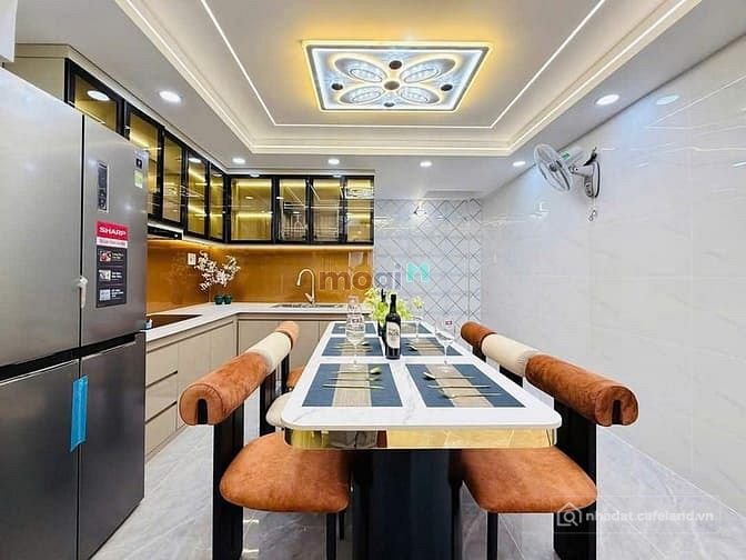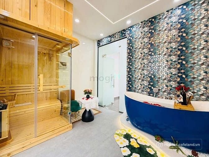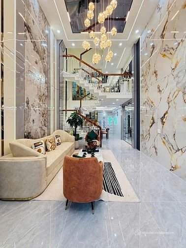 + Kết cấu: Nhà 1 trệt, 1 lửng, 3 lầu, sân thượng, thiết kế thông thoáng rất đẹp và xây mới 100%, gara xe hơi, có giếng trời, kiên cố, 4 phòng ngủ, 6 nhà vệ sinh, có phòng thờ, phòng bếp, khu giặt phơi, phòng chăm sóc sức khoẻ, phòng xông hơi, hệ thống điện smartphone, phòng khách, khu dân trí cao, sang trọng, Full nội thất cao cấp vô ở ngay.