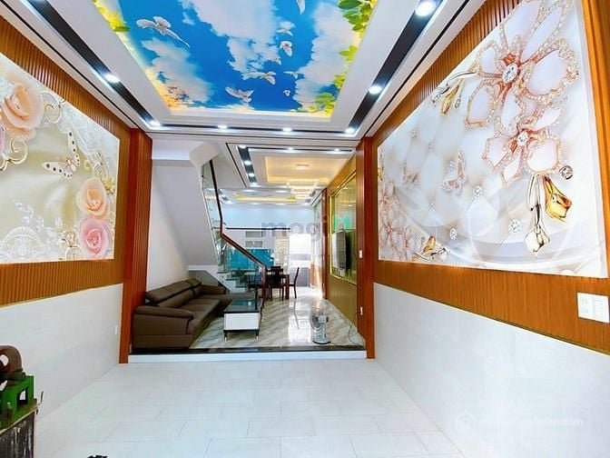Diện tích 4m x 14m trệt 03 lầu sân thượng, 04 phòng, 05 nhà vệ sinh. Sân trước gara để xe rộng rãi.