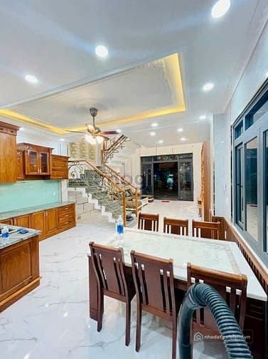 Kết cấu: 1 trệt + lửng + 2 lầu + tum gồm phòng khách, bếp, sinh hoạt chung, 4PN, sân thượng, 5WC.