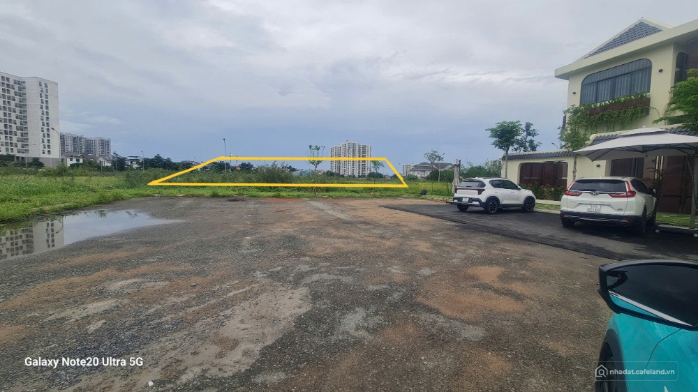 Ngang 25,6mx15m, tổng 384m² full đất OĐT sân trước mặt rộng 500m². Nằm trong trung tâm của dự án.