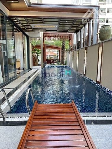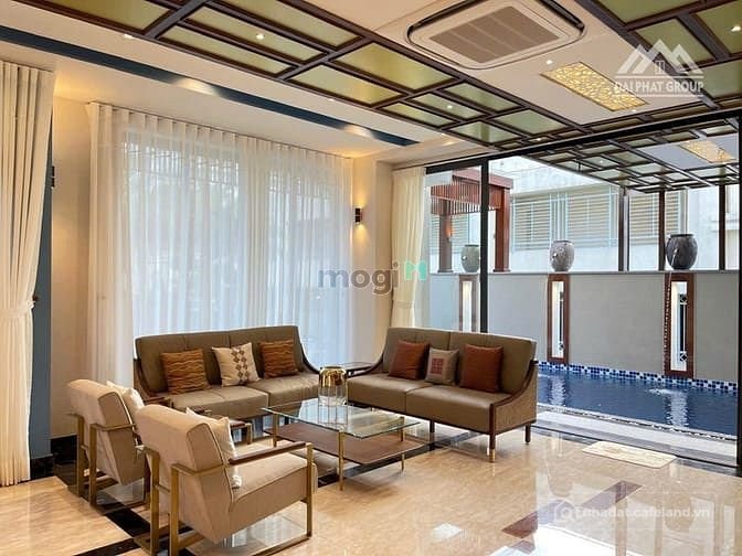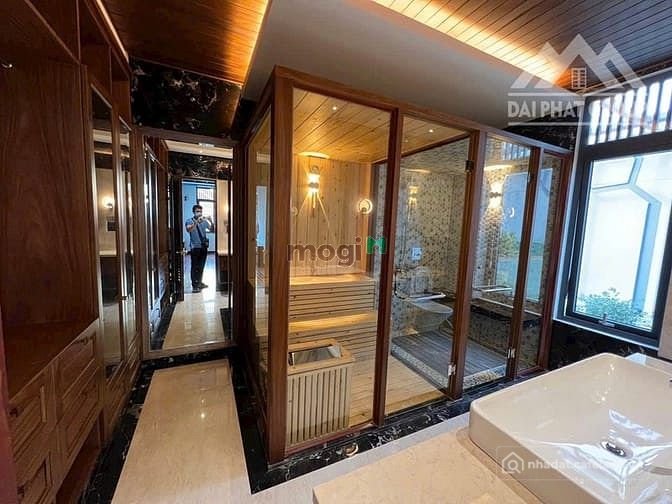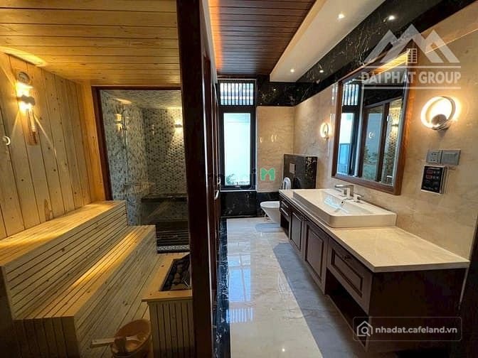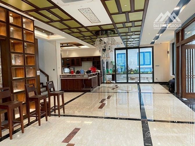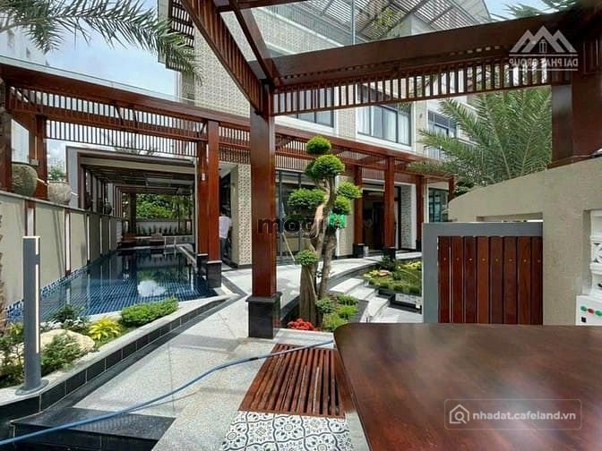 6 phòng ngủ, 2 phòng master, 1 phòng thờ, 1 phòng giúp việc, 7 wc, 1 phòng nghe giải trí , thang máy, hồ bơi rộng, hồ cá koi...