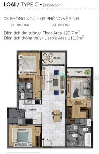 - Diện tích: 120.7 m.