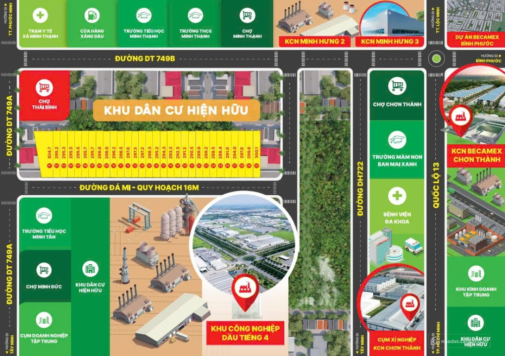 Bao quanh bởi 𝐊𝐂𝐍 𝐌𝐢𝐧𝐡 𝐇𝐮̛𝐧𝐠 𝟐 – 𝐌𝐢𝐧𝐡 𝐇𝐮̛𝐧𝐠 𝟑 – 𝐊𝐂𝐍 𝐁𝐞𝐜𝐚𝐦𝐞𝐱 𝐂𝐡𝐨̛𝐧 𝐓𝐡𝐚̀𝐧𝐡 – 𝐊𝐂𝐍 𝐃𝐚̂̀𝐮 𝐓𝐢𝐞̂́𝐧𝐠 𝟒 Nguồn công nhân, kỹ sư, chuyên gia đông đảo, tiềm năng cho thuê và kinh doanh cực lớn.