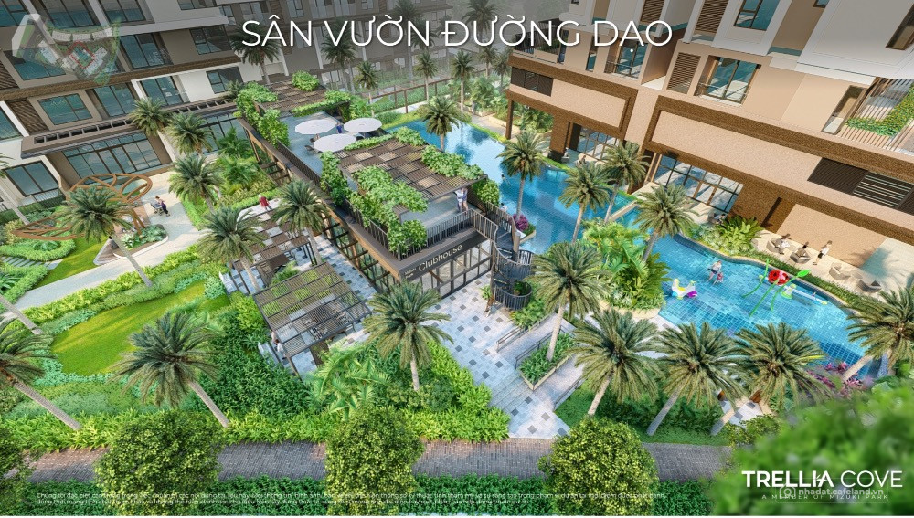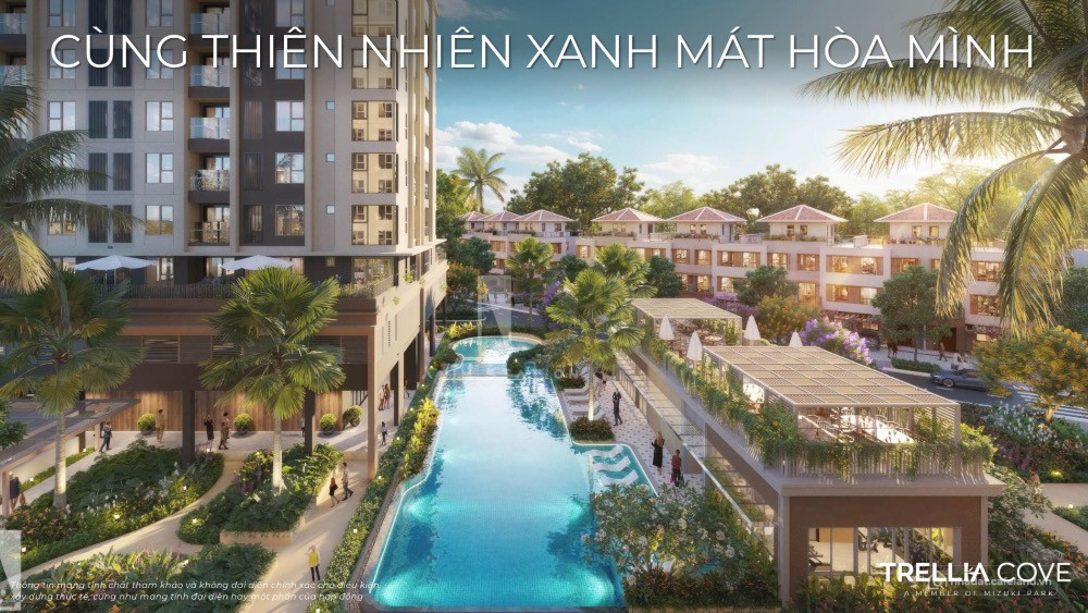 - Sản phẩm: Căn hộ Trellia Cove diện tích 59m2 –97,4m2 (2–3 PN), view thoáng, layout tối ưu, ban công hướng kênh đào và sông nước xanh mát.