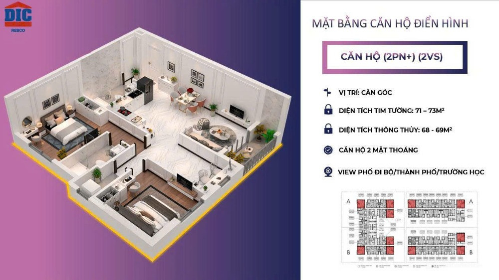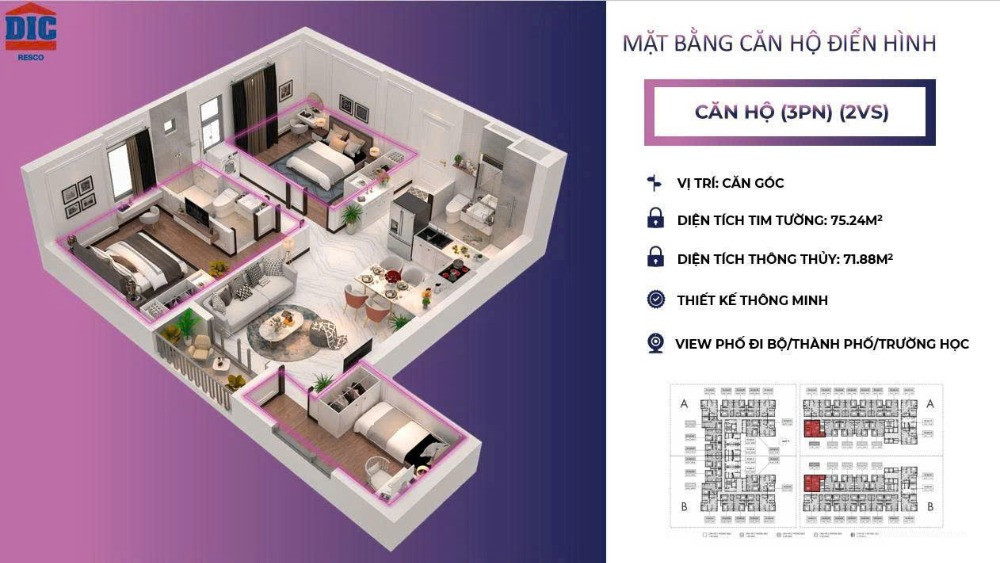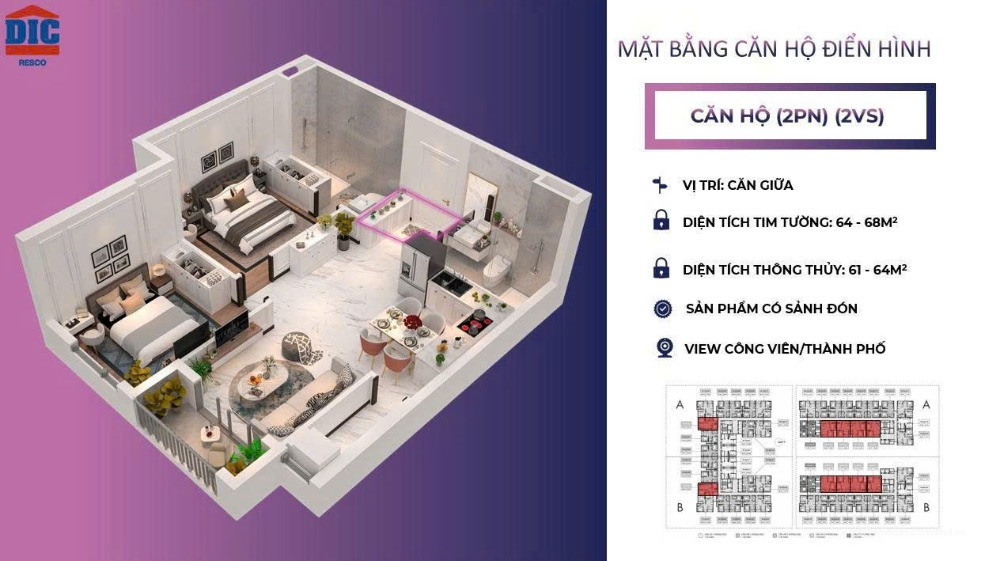 Diện tích căn hộ: 49 – 75m² (tối ưu công năng, thiết kế thông minh)