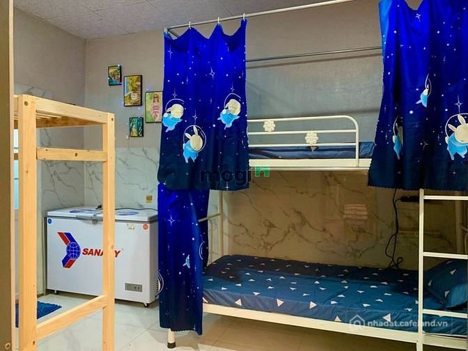 -Trang bị giường tầng cao cấp, có tủ cá nhân, bàn học, nệm và drap mới, tủ sắt đựng đồ cá nhân có chìa khoá riêng.