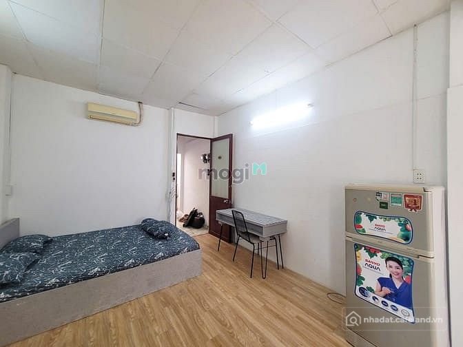 Trang bị full nội thất: giường, nệm, máy lạnh, tủ lạnh, bàn làm việc, tủ đồ, máy nước nóng