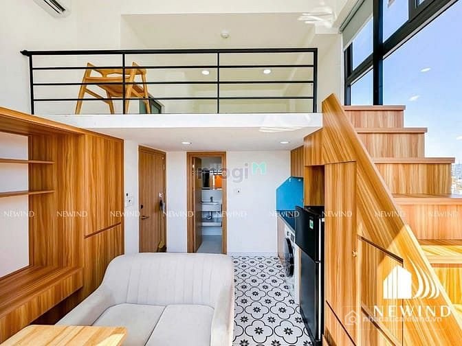 Phòng rộng 34m2, có gác lửng thông thoáng, tận dụng tối đa không gian sống