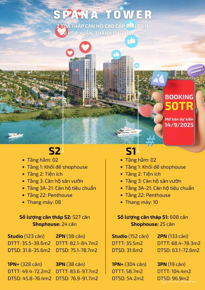 - Quy mô: 2 tòa tháp, 22 tầng, 1.281 căn hộ (Studio 3PN, Penthouse, Shophouse)