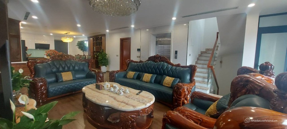 - Tầng 5: Bước vào không gian đầm ấm, sang xịn, đậm chất quý tộc là phòng khách với bộ sofa tân cổ điển trị giá cả tỷ đồng. Không gian bếp hoàn hảo, thoáng sáng tự nhiên.